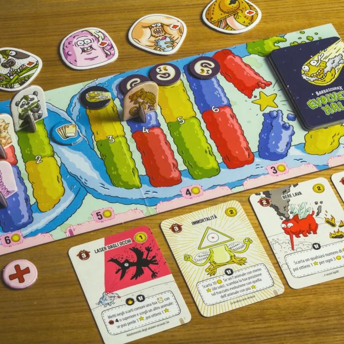 Immergiti nell'universo unico di Barbascura X - Evolversi Male, un gioco che sfida le leggi dell'evoluzione. Sei pronto a metterti alla prova in una corsa frenetica verso il futuro? In questo gioco, assumi il ruolo di un animale male evoluto e cerca di superare i tuoi avversari accumulando più gettoni evolutivi. Adatta le tue strategie per sopravvivere ai catastrofici eventi di estinzione e sfrutta i tuoi micidiali poteri per ostacolare gli altri. Un'esperienza di gioco che ti invita a evolverti, ma in modo decisamente originale!